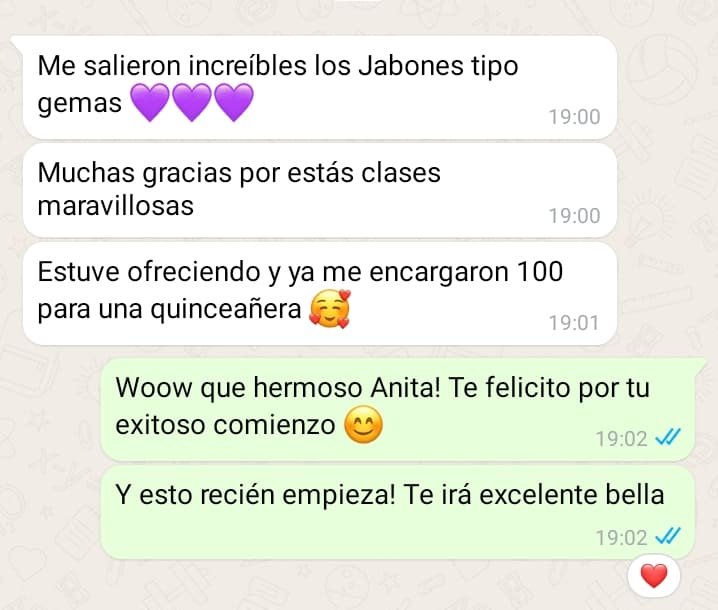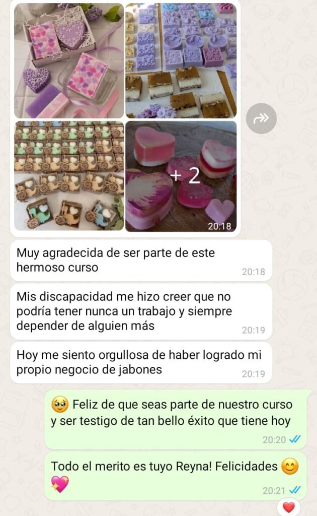 Es rentable porque no solo te enseñamos a elaborar jabones, sino que también te revelamos las estrategias de ventas que están aplicando nuestras alumnas con éxito cada día.